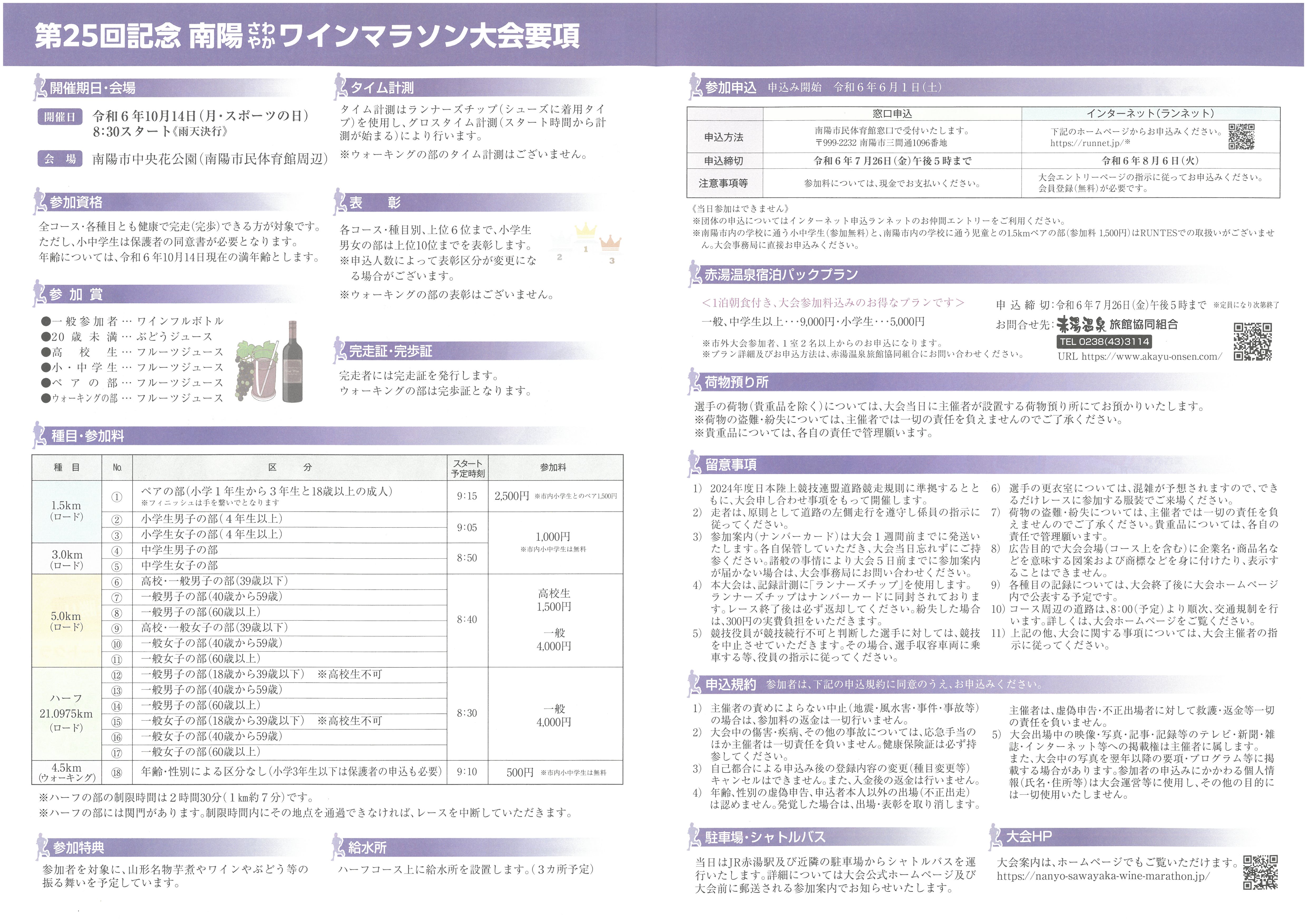 第25回さわやかワインマラソン大会が10/14(月・祝)に開催されます。